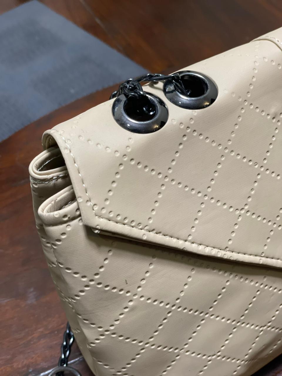 Elevate your accessory collection with this beige quilted faux leather crossbody bag, designed to deliver timeless elegance with a modern twist. Crafted from high-quality faux leather, the quilted texture adds depth and sophistication, while the soft beige tone makes it effortlessly versatile for both casual and dressy looks.