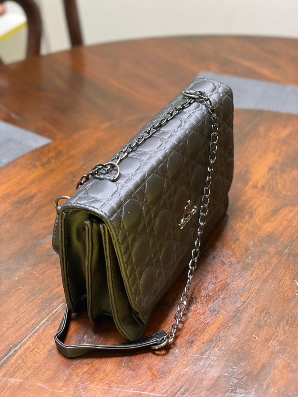 The sleek chain strap adds a sophisticated edge and allows for multiple carrying options — wear it comfortably over the shoulder, crossbody, or carry it as a chic hand-held bag. Its compact yet functional interior is ideal for everyday essentials such as a phone, wallet, keys, and makeup.