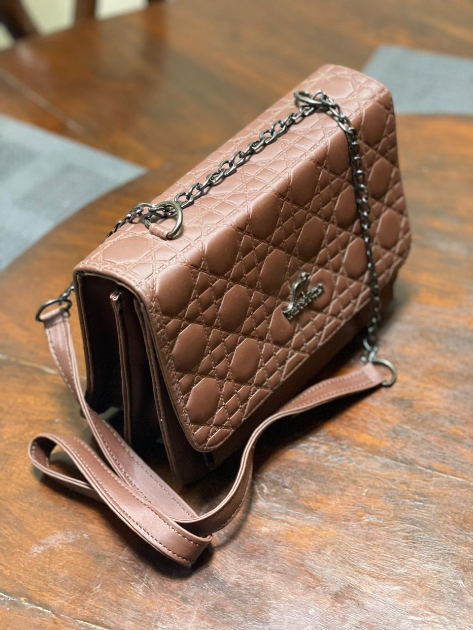 The bag features a sleek flap closure and subtle Dior hardware accents, adding refined elegance without overpowering its design. A versatile chain strap allows for effortless styling — wear it as a crossbody, over the shoulder, or carry by hand for a polished, elevated look.