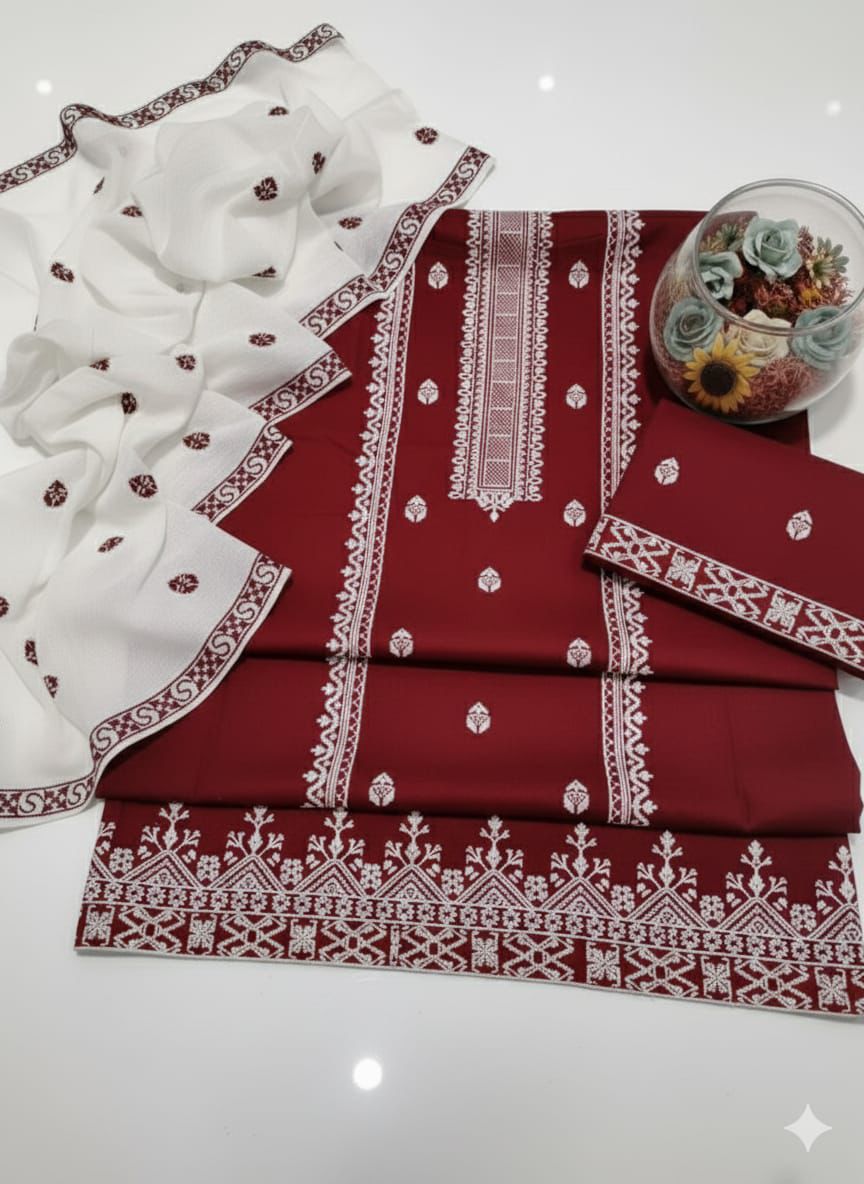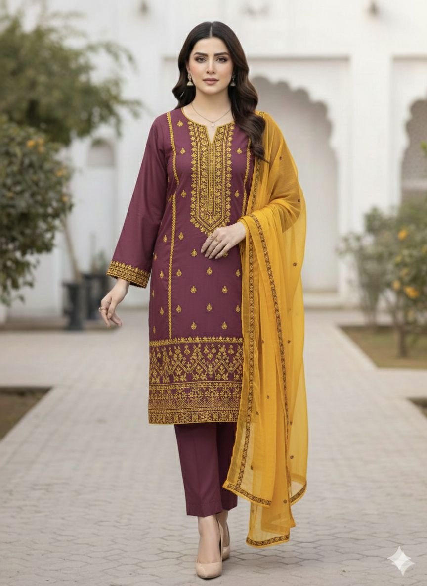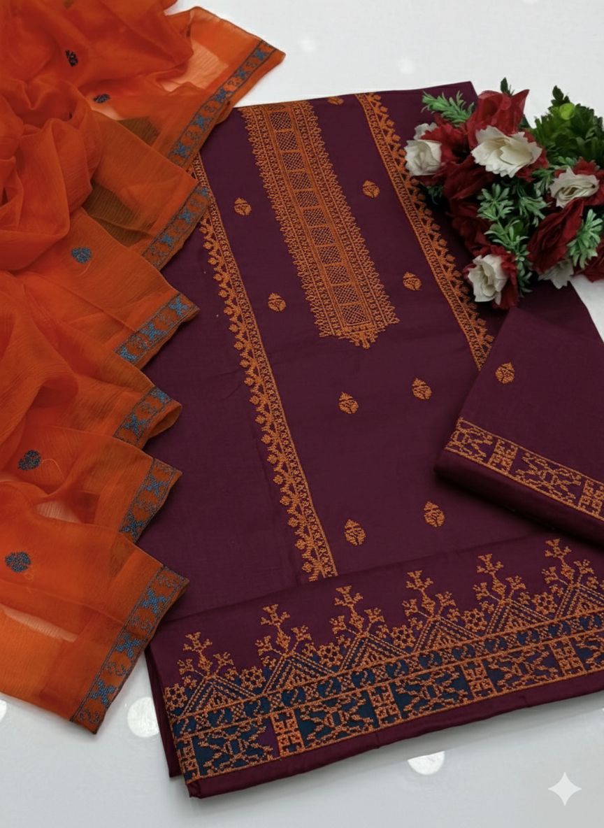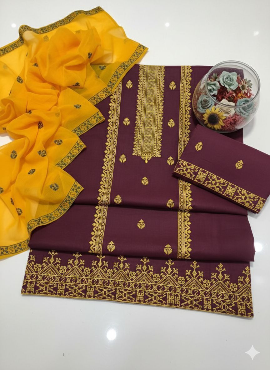 •Trouser Dyed lawn cotton with Embriodery work on bottom