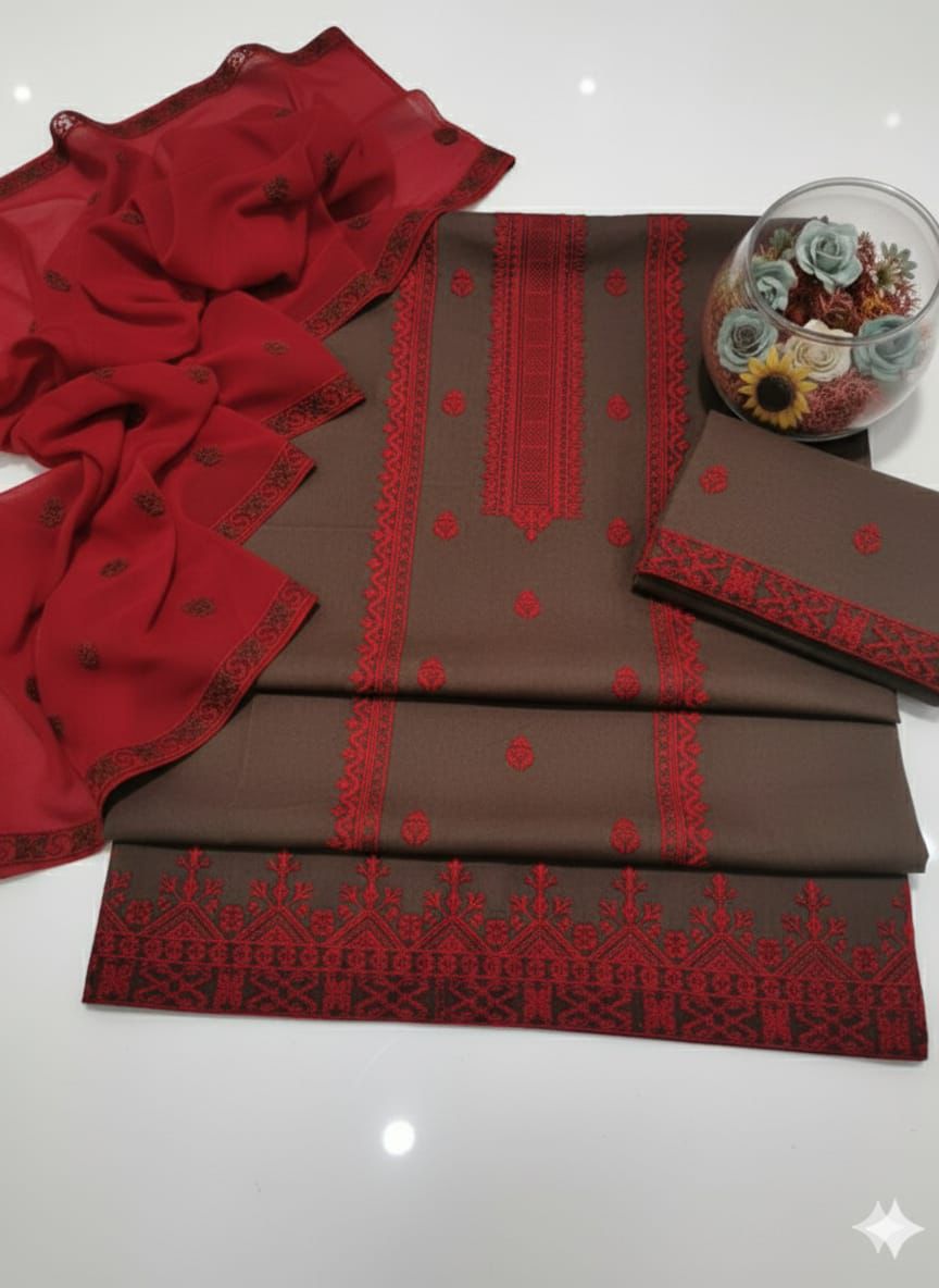 * Shawl/Dupatta:Bamber chiffon 80 grm with heavy Emb work