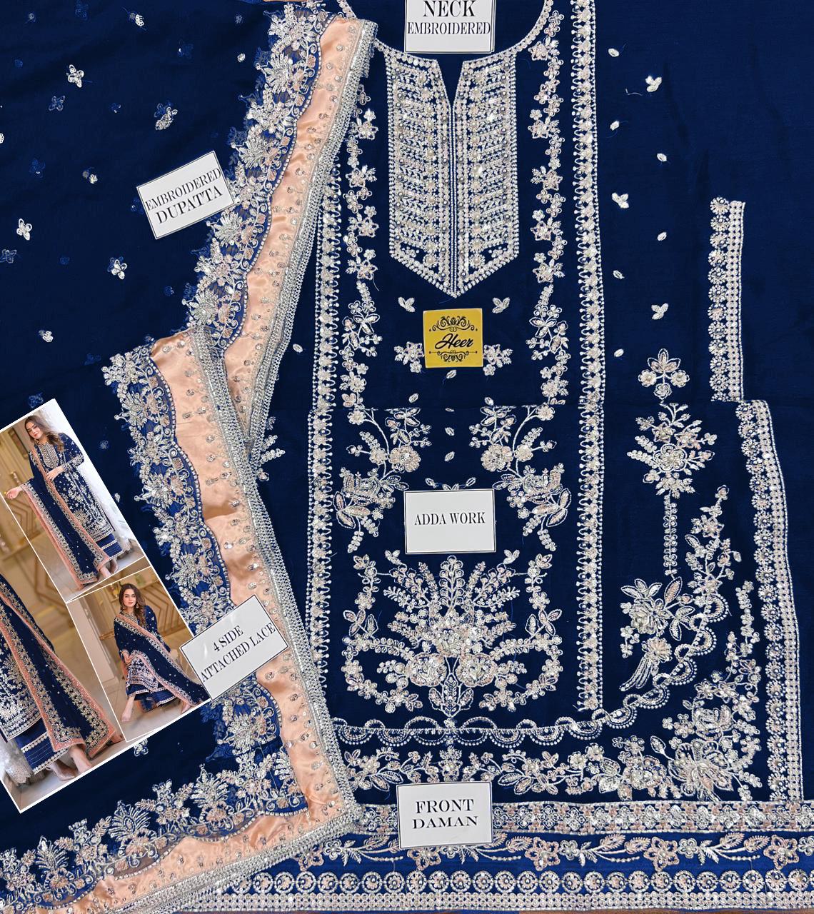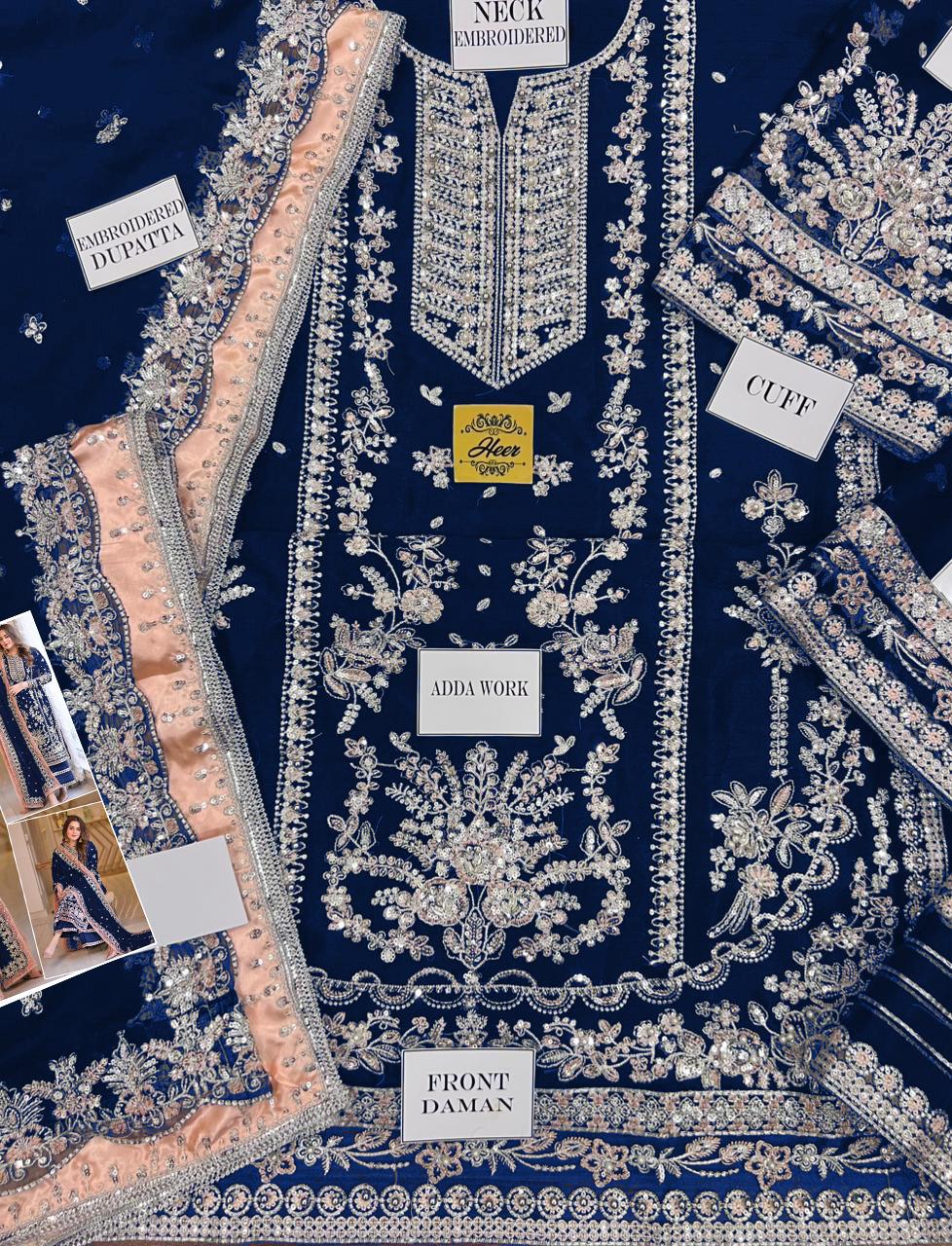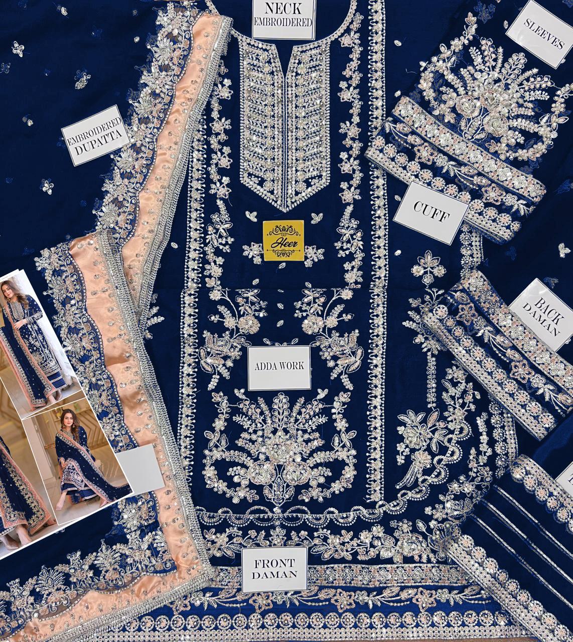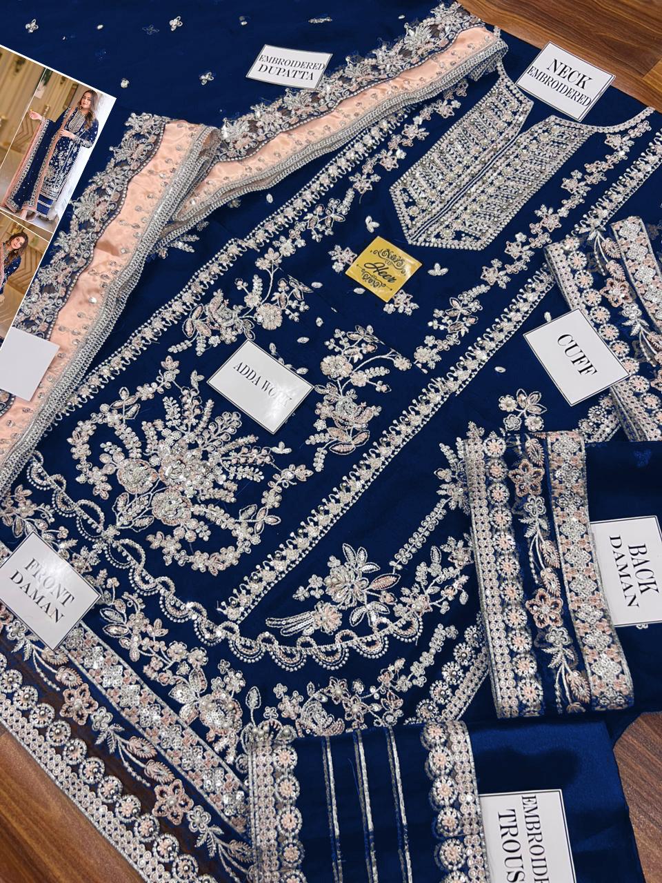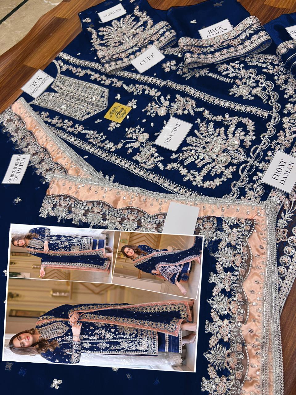 Step into occasion-ready sophistication with Aneela’s Luxury Velvet Embroidered 3-Piece Unstitched Suit, beautifully presented in a rich zinc blue tone. Designed for weddings, festive gatherings, and formal celebrations, this ensemble captures timeless elegance through luxurious fabric and intricate craftsmanship.